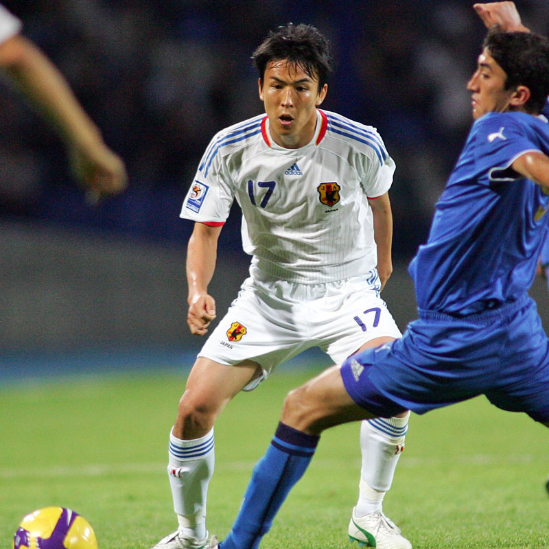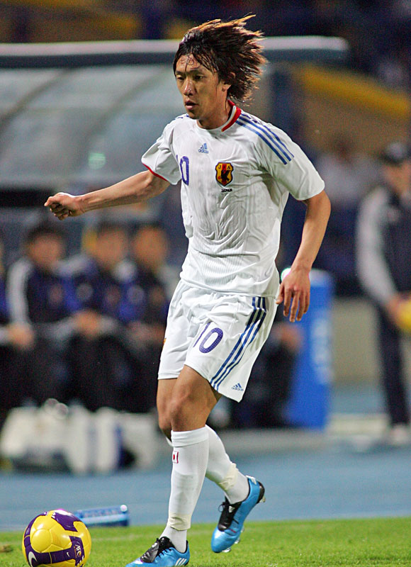 アウェイキットは伝統のホワイトで、ご来光の放射状デザインはホームキットと同じ。袖には明るいブルーのスリーストライプスが入る。2008年6月7日に行われたW杯アジア3次予選・オマーン代表戦で初使用となった。