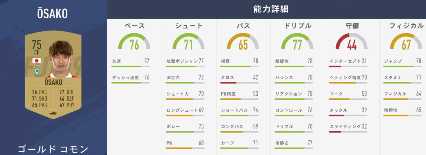 ちなみに、ブレーメンFW大迫勇也はこんな感じ。