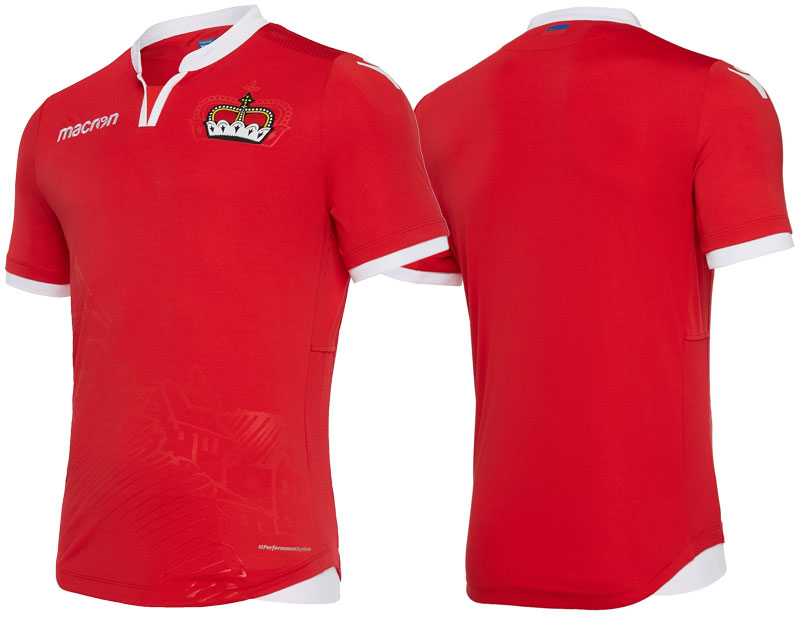 FIFAランキング182位のリヒテンシュタイン代表。前面にはリヒテンシュタインの名所「ファドゥーツ城」をホーム、アウェイのどちらにも描いている。キットカラーは国旗色だが、その意味はブルーが“空”で、レッドは“家庭の暖炉”。ちょっと心が和む。