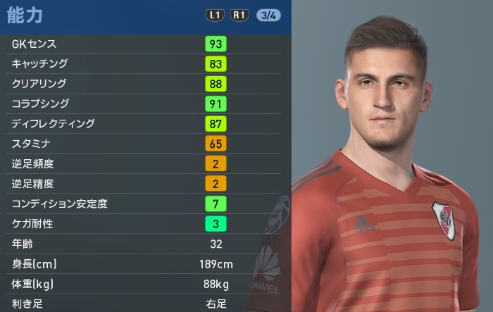 かつてはその名前が先行していたが、確かな実力を持つ守護神。大柄な体格ながら、運動能力が高く、重さを感じさせない。