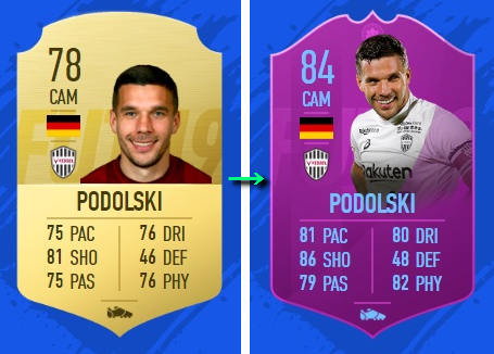 次は、ポドルスキ。78→84と総合値は6ポイントUPしている。