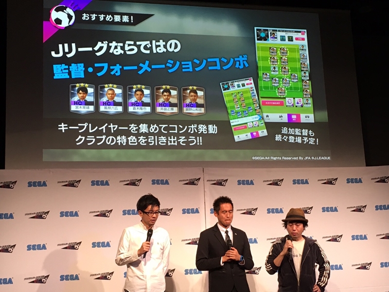 配信当日に行われた発表会では、『サカつく RTW』プロデューサーであるセガゲームスの山田理一郎氏、ディレクターの宮崎伸周氏とともに、今シーズン限りで現役を引退した川口能活氏がゲストで登場。