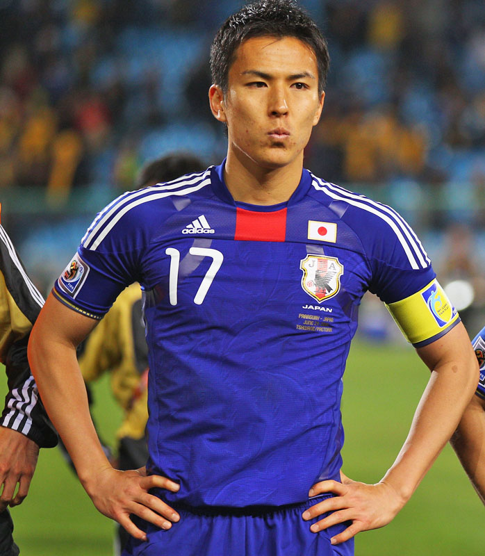 画像の長谷部誠が着ているのが「テックフィット」。肩周りのバンドに特徴がある。長谷部のほかに長友佑都、岡崎慎司、大久保嘉人などが好んで着用していた。
