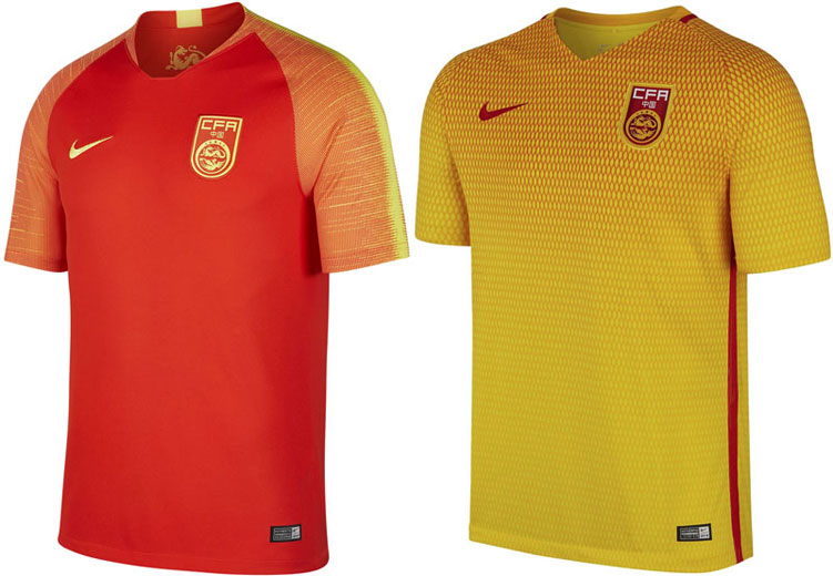 今大会は2018年モデルを継続使用の予定。なお2018年のアウェイキットだが、当初は「ブラックを基調に龍のプリント」のキットを使用予定だった。だが中国側で何らかの問題が生じたのか、そのブラックキットは一度も使われていない。その代わりに2018年は、イエローの2016アウェイを継続して使用した。