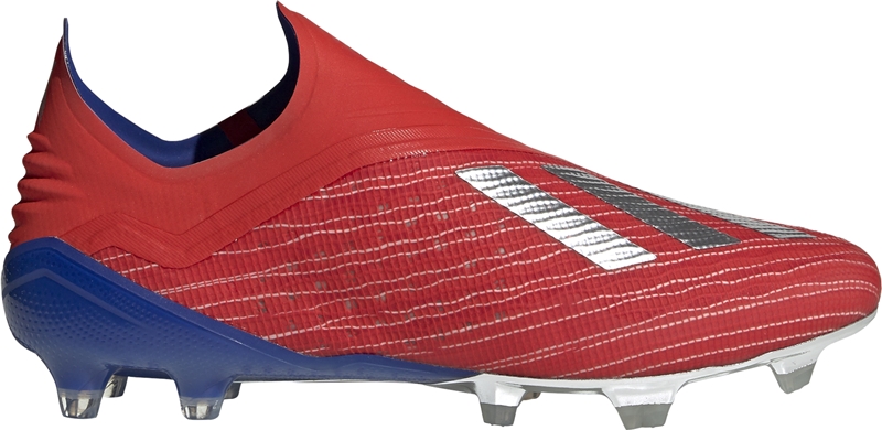 ワンピース構造のアッパーによる一体感フィットの『プレデター 19』。こちらの新色は、ボールドブルー×シルバーメット×アクティブレッドだ。