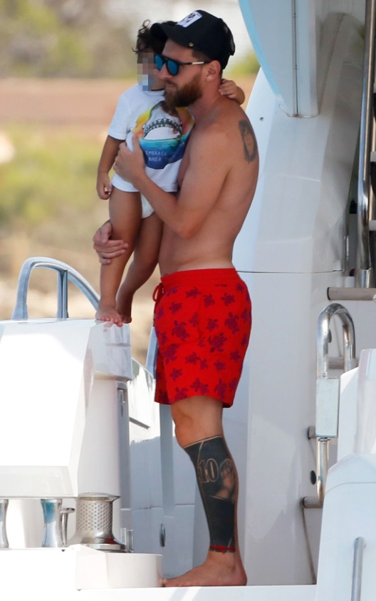 メッシはワールドカップ終了後のバカンスでも左足首にこのリボンを巻いていた。
