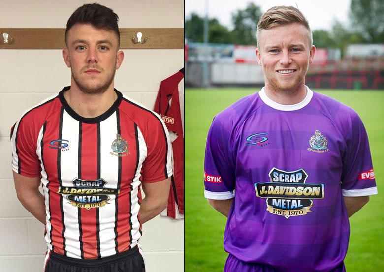 ちなみに、普段はこのようなユニフォームを着用。レッド/ホワイトのストライプがホームキットで、パープルはアウェイキット。どちらもイングランドでは決して珍しくないデザインだ。