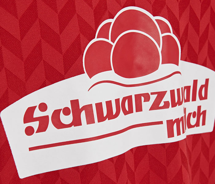 胸のスポンサー「Schwarzwaldmilch」は乳製品ブランド。ロゴマークは通常のデザインではなく、このキットのために特別にレトロなスタイルへと変更している。