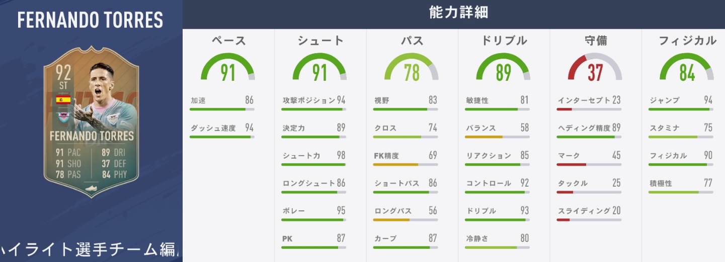 少し前になるが、サッカーゲーム『FIFA19』のアルティメットモード内で全盛期バージョンのトーレスが登場。その能力設定を見てみよう。