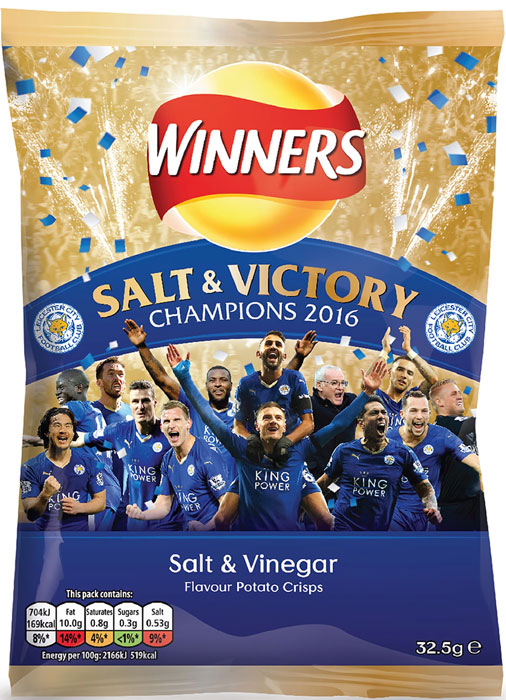 2016年にはプレミアリーグ優勝記念として、こんなパッケージの限定品も登場。ロゴマークを「WINNERS」に変える遊び心が面白い。