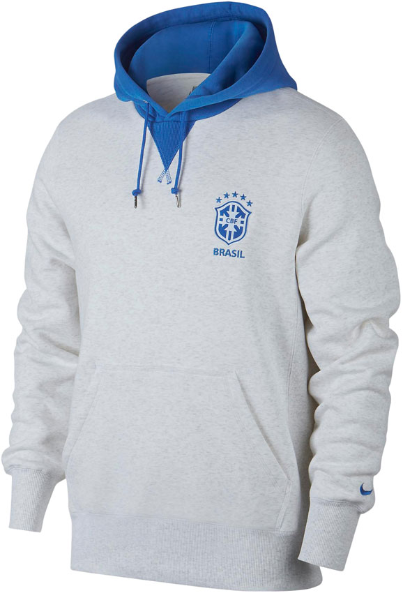 ライトグレーを基調にブルーのフードが特徴あるカラーリング。Nikeロゴは胸ではなく左袖に配置。前面にカンガルーポケットが付く。現在のところはブラジル国内のみでの販売となっている。