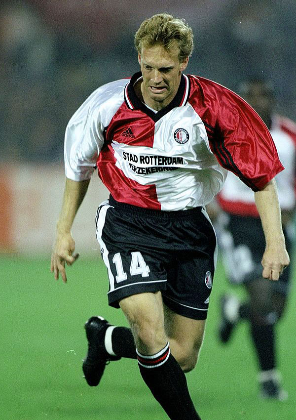 不変のデザインと言うとアヤックスのイメージが強いが、ライバルのフェイエノールトも負けず劣らずだ。赤と白が左右非対称のアシンメトリーデザインは1912年頃から採用され、脈々と受け継がれている。