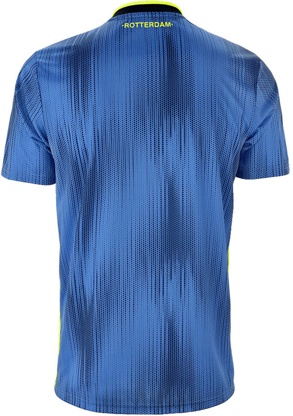 新しいアウェイキットは、18-19シーズンモデルと同様に定番のブルーを基調としているが、差し色に発色の良いイエローを組み合せた珍しいスタイルが誕生。胸スポンサーは新たに2シーズンの契約で、ホリデーパークの「Droomparken」が務める。
