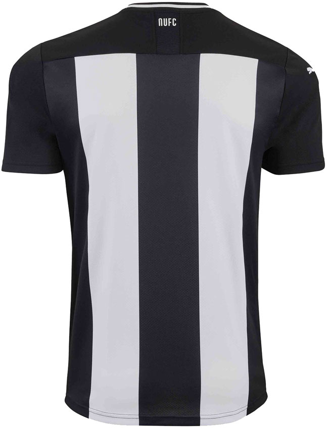 ブラックとホワイトを配する2重ラインの首周りと、上から下までシンプルなストライプは、優勝当時のユニフォームデザインに近い。肩にはチーム名の略称“NUFC”をレタリングする。