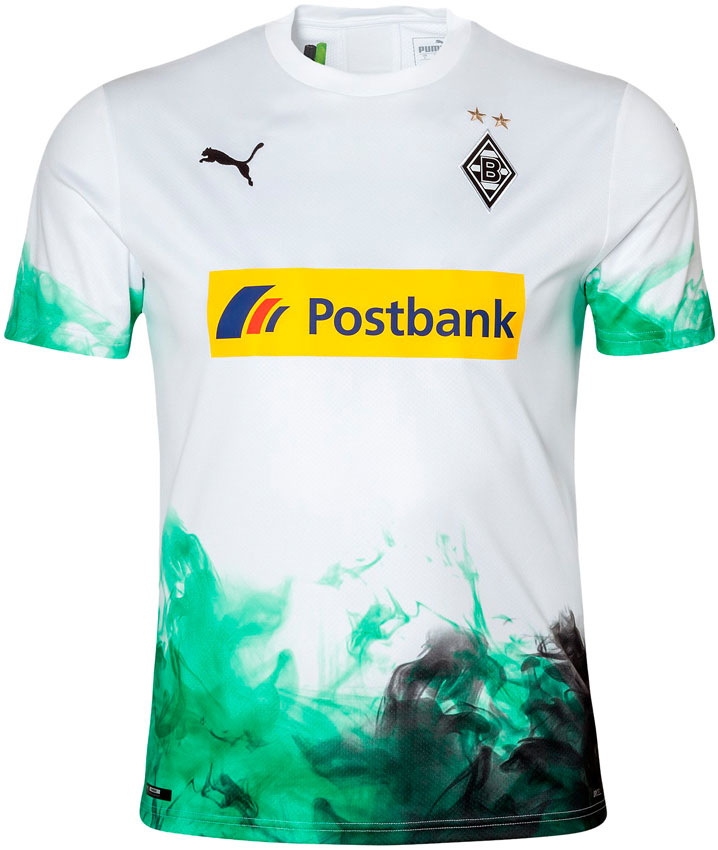NEWホームキットは、まるでカラーの水墨画のような美しいグラフィックが特徴。これまでのボルシアMGのユニフォームには見られなかった斬新なデザインを採用となった。胸スポンサー「Postbank」は今季で11シーズン目に突入する。