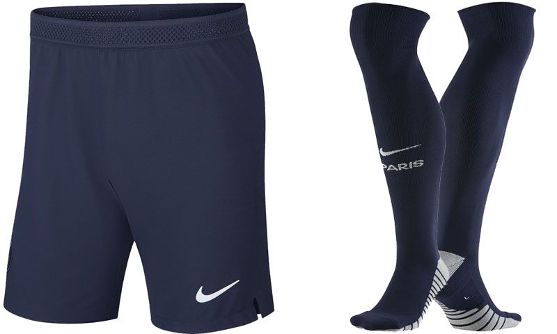 パンツとソックスはどちらもネイビーを基調としたデザイン。ソックスの前面にはシンプルにNikeロゴと“PARIS”のグラフィックを入れる。