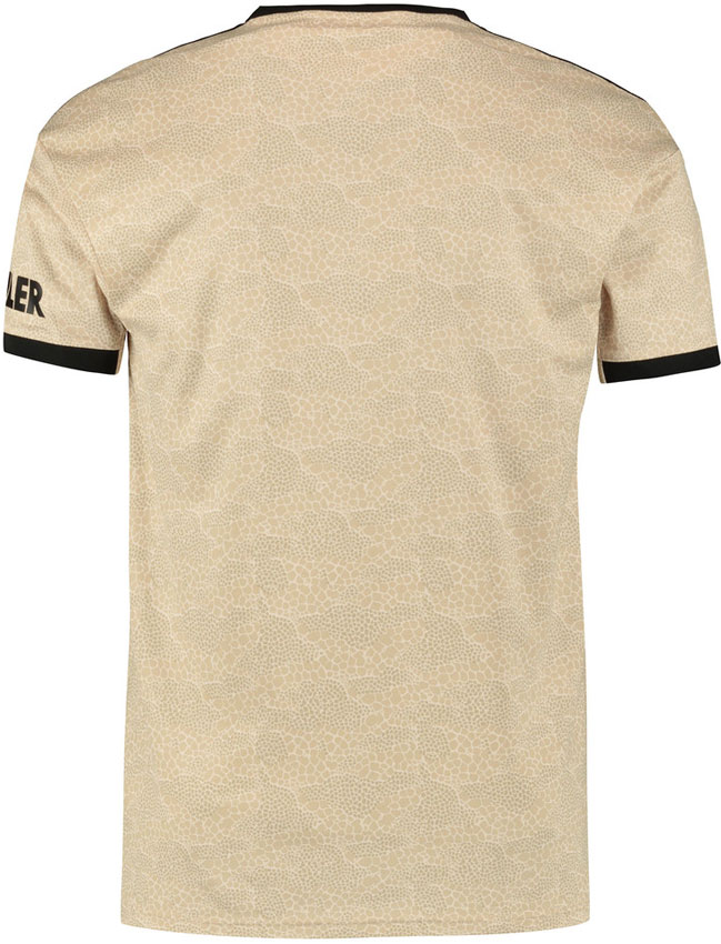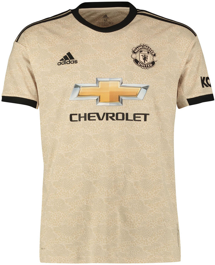 2001-02シーズンの100周年記念ユニフォームを彷彿とするゴールドカラーだが、クラブの説明によればこの色はサバンナとのこと。シャツの左裾には“MANCHESTER UNITED FOOTBALL CLUB”を垂直にレタリングする。
