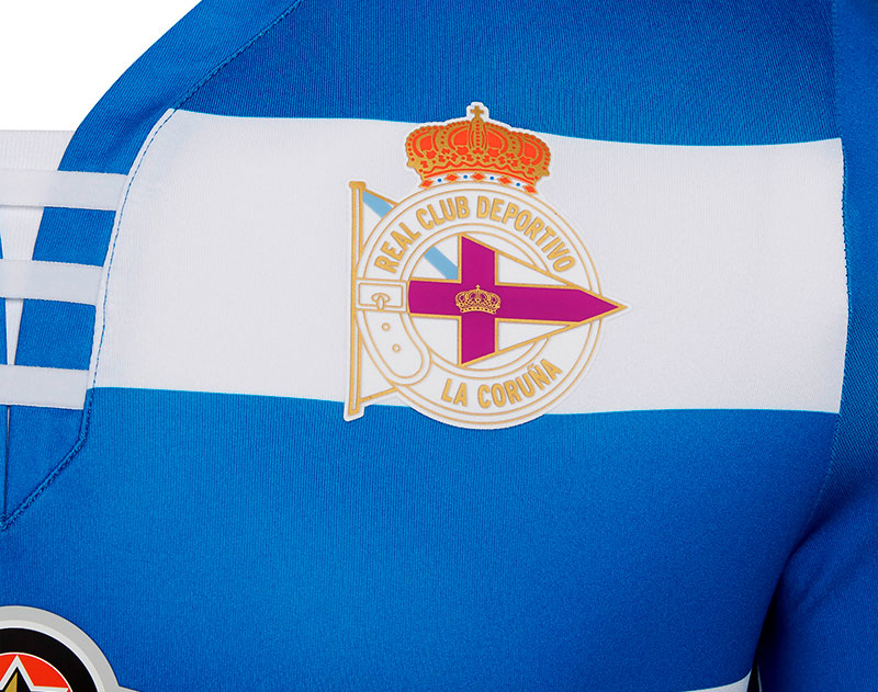 背面の首元にはホームタウン名“A Coruña(ア・コルーニャ)”をレタリング。ストライプは腰部分で止めて残りはブルー一色に。胸スポンサーは「Estrella Galicia(ガリシアのビールブランド)」、腰部分は「ABANCA(ガリシア州の銀行)」で継続する。