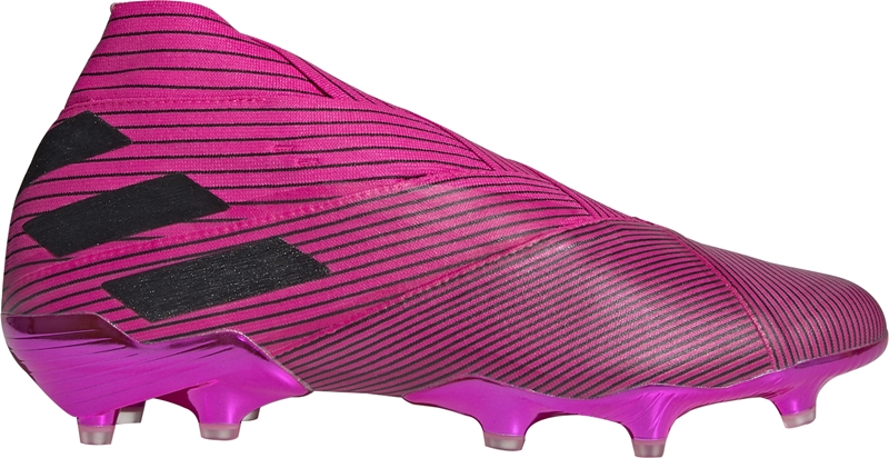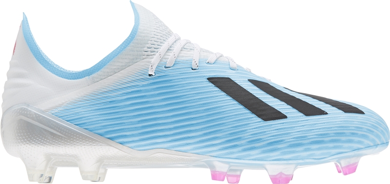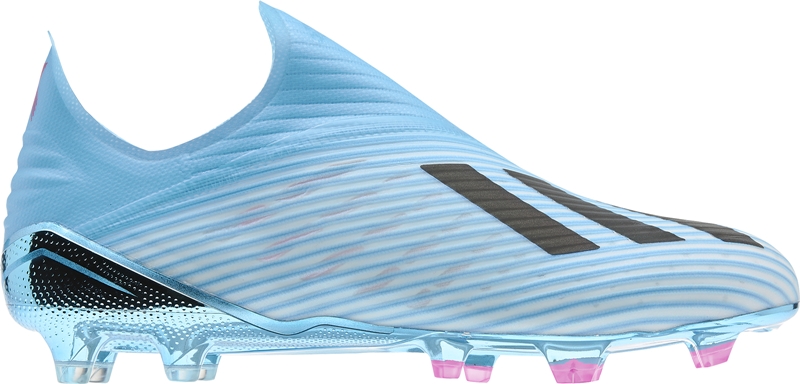 シューレースレスの『エックス 19+』と比べると後足部やアウトソールなどに白が配されており、より淡い印象を与えるカラーリングだ。