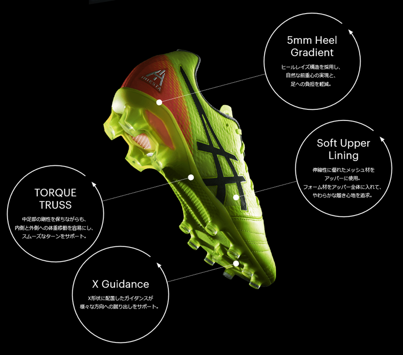 Asicsのサッカースパイクといえば、これまでイニエスタも履いてきた『DSライト』シリーズがお馴染みだが、その開発で得た知識や技術を最大限に活かしつつ、イニエスタに最適なスパイクとして登場したのが『ウルトレッツァAI』だ。