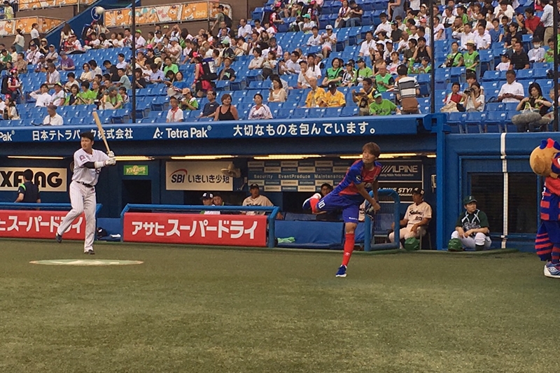 そのチームのキャプテンである東慶悟が8月7日、プロ野球・東京ヤクルトスワローズの試合で始球式を行った。