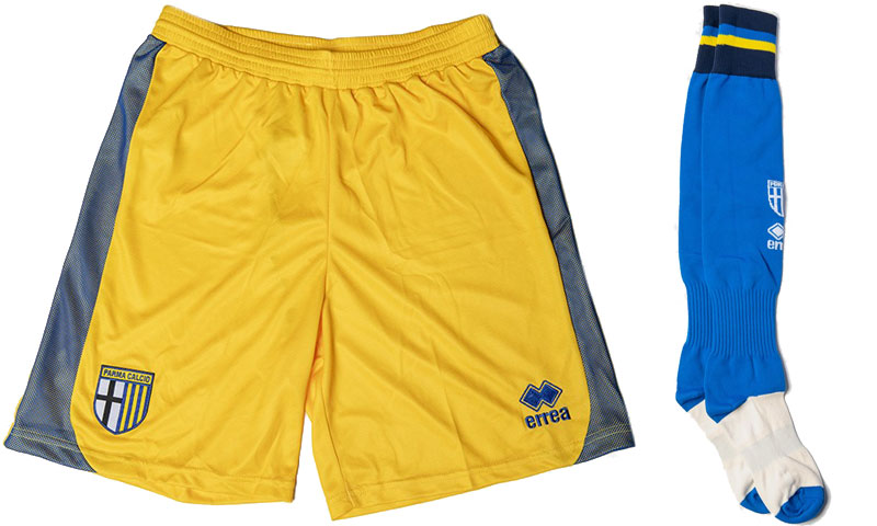 新アウェイユニフォームは、パルマの代表的なデザインであるジャッロブルーの水平ストライプに。胸には消炎鎮痛剤のブランド「Cetilar」のロゴマークを掲出する。