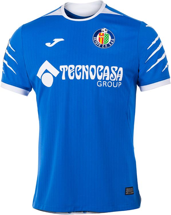 ホームキットは伝統のブルーを基調に、シャツ全体にシャドーのピンストライプをあしらうデザイン。昨季は首周りや袖口にスペイン国旗カラーを配したが、今季はシンプルにホワイトの差し色を当てる。袖の鉤爪の傷跡のようなグラフィックは昨季から継続。