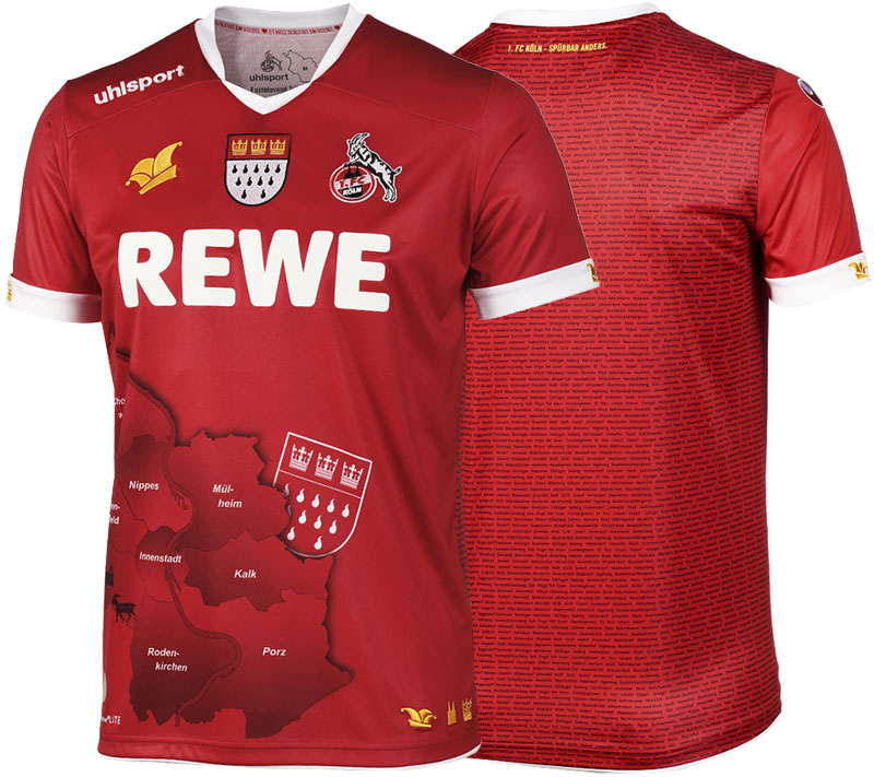 昨季はレッドとホワイトの水平ストライプ柄だったが、今年はレッドがベースカラーに。1部リーグ復帰が好材料だったのか、今回は凝ったデザインのカーニバルキットが復活した。前身頃にはケルンの地図を大胆に描く。