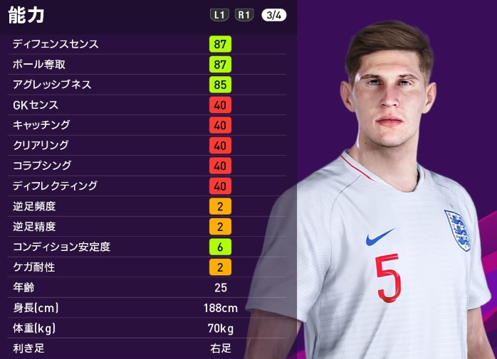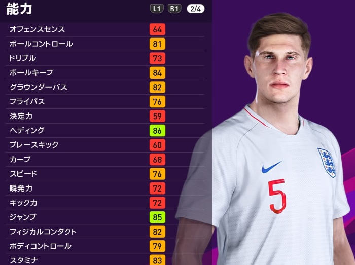ここでは、KONAMIのサッカーゲーム最新作『eFootballウイニングイレブン2020』で、両チームのイングランド代表勢の能力を見てみよう。