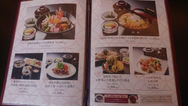 Jヴィレッジの正面玄関から入って右方向に進み、ホテルのフロントを過ぎたところに入口がある。洋食コースと和食メニューがあり、今回は1800円の「福島県漁連さんからの海鮮丼」を注文した。