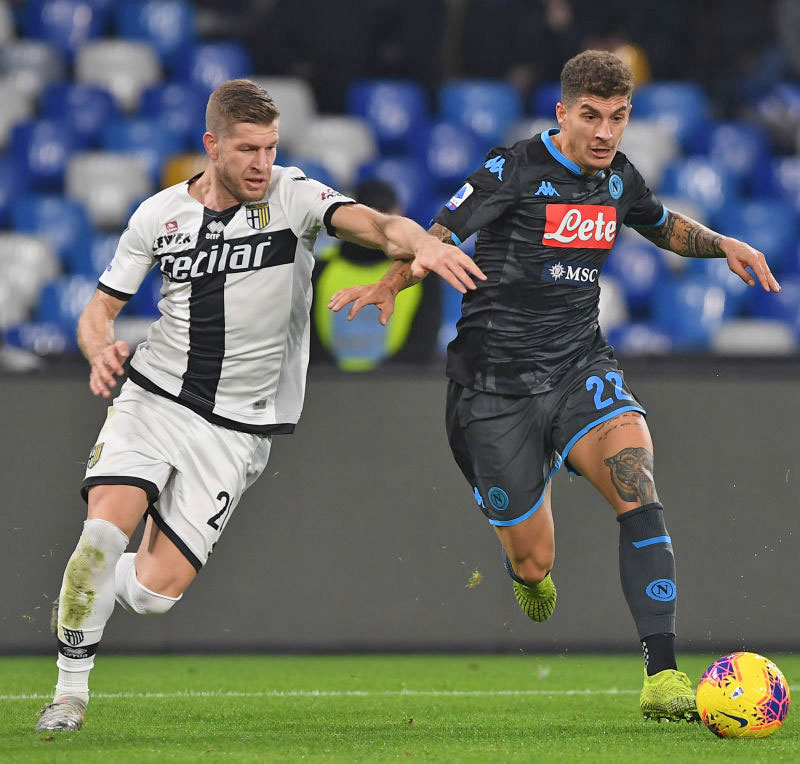 一見すると迷彩柄のように見えるこのデザインは、ナポリの街に関係するものをグラフィック。発表当日のパルマ戦で実戦デビューを果たしている。