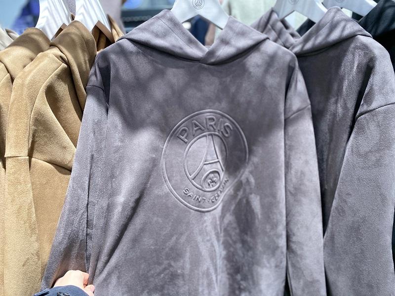 一番の売れ筋はライフスタイルのアイテムで、低彩度のスエード調のパーカーが一番人気とのことだった。確かにこれはサッカーに関係なくても文句なしにかっこいい。