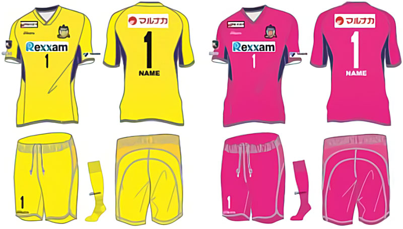 GKユニフォームは瀬戸内の太陽・情熱とエネルギーを表現。ホームがイエロー、アウェイがピンクで継続となる。