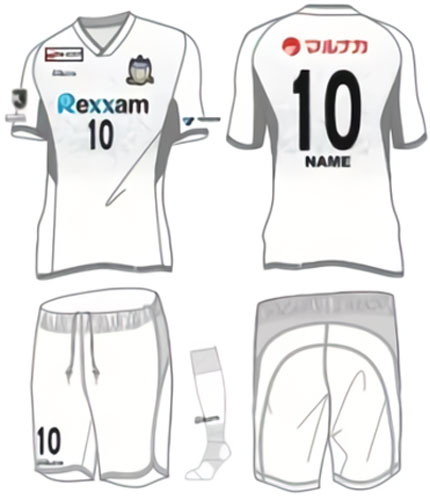 アウェイユニフォームは瀬戸内海の大小の島々をイメージし、横線でチームとサポーターとの繋がりを表現。地域の特徴が色濃いデザインを採用している。