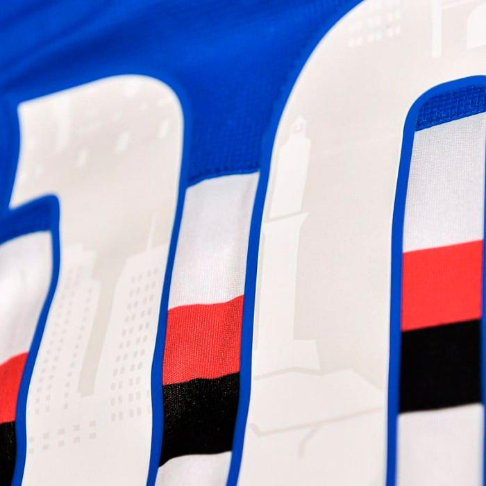 今季のホームユニフォームはブルーを基調とした伝統のデザインを継承。胸中央のジェノヴァ市のシンボル“聖ゲオルギウス十字)”は不変だ。首周りはポロ襟が採用されていて、全体的にクラシックなスタイルに。