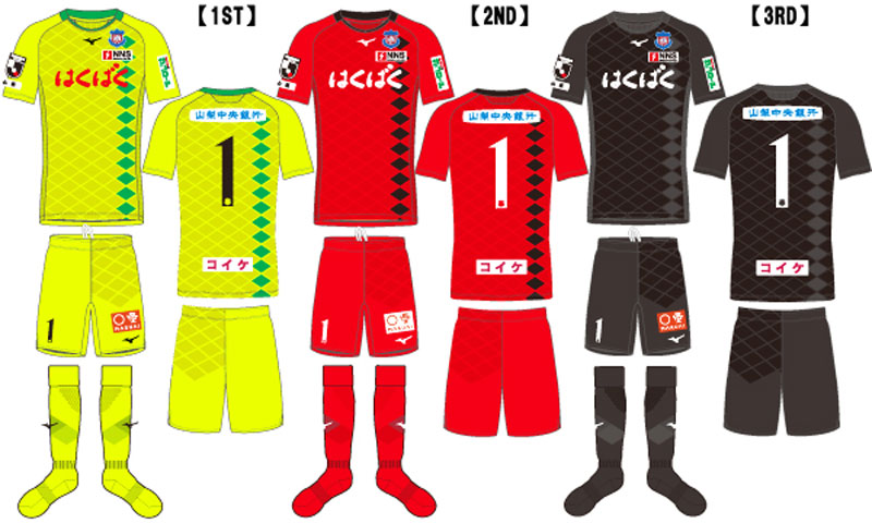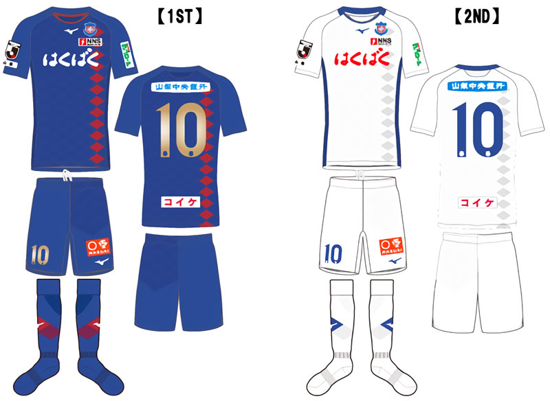 2020年シーズンのユニフォームは2019年モデルを継続使用となる。デザインは武田信玄公の家紋であり、クラブエンブレムにも象徴される「武田菱」。気品ある勇士像をイメージしている。