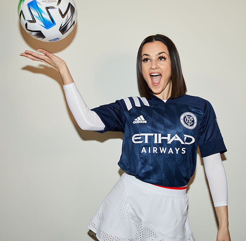 MLSが主催したユニフォーム発表会でモデルを務めたのは、タレントでNFLニューヨーク・ジェッツの元チアリーダーだったナタリー・ネグロッティ。