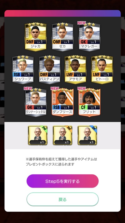 今回のガチャも奇数回に設定されている「特別枠」で星5の確率が上がるのだが、偶数回でGKのステケレンブルフ共にライカールトを引き当てることができた。