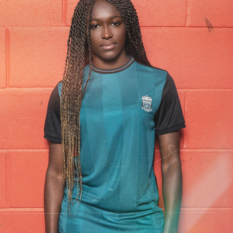 今回登場したウェアは90年代をテーマにしたレトロデザインで、色が当時のアウェイユニフォームを想起させる。また、エンブレムはライヴァーバードのみではなく、エターナル・フレームまで描いた公式エンブレムを使用している点も見逃せない。