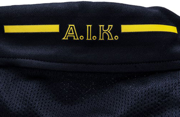 襟にはチーム名をレタリングする。日本語では“AIKソルナ”と表記するが、正式なチーム名は“Allmänna Idrottsklubben”という。略してAIKだが、実は正式名にソルナの文字は入らない。