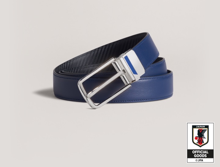 SAMURAI BLUEをイメージしたグラフィカルなストライプに、カラーはdunhillのイギリス的なモチーフとサッカー日本代表チームを象徴するネイビーで統一し、モダンな装いに仕立てました。