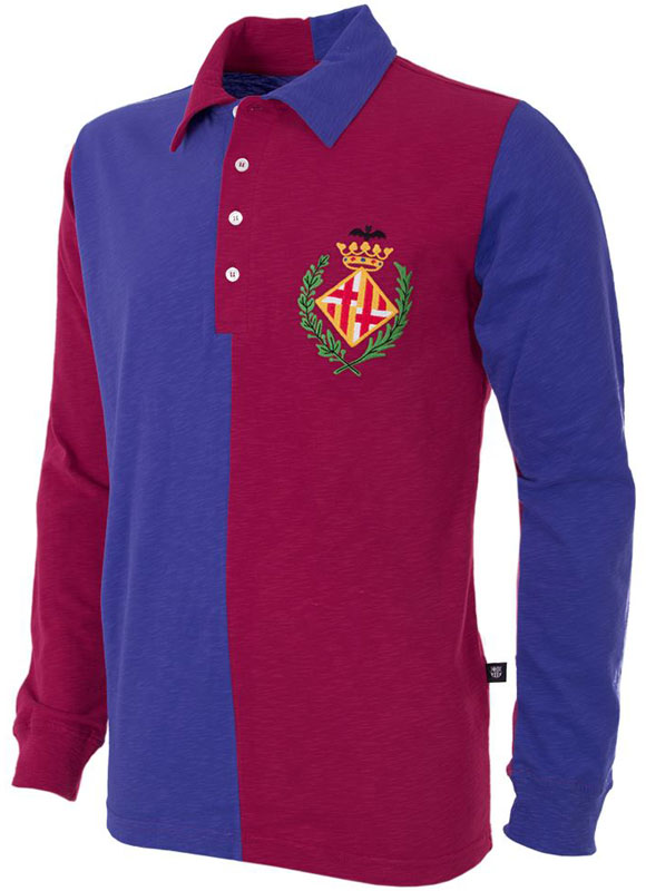 クラブの初代ユニフォームを再現した一着。“ブラウグラナ(臙脂と青)”が半々のデザインは、後に100周年記念モデルで再び登場となる。左胸にはバルセロナ市の紋章を模ったエンブレムを付けていたという。