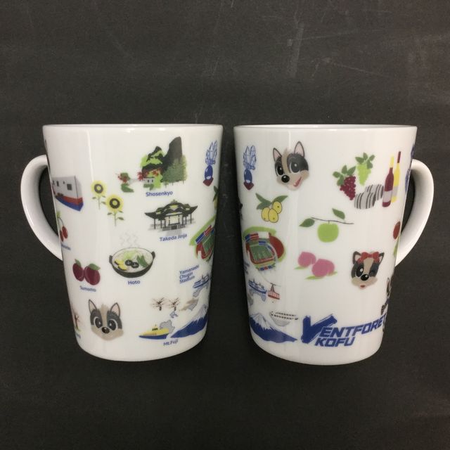 女子会を企画したさん推薦のホームタウンマグカップ。ほうとう・武田信玄・マスカットなど甲府のモチーフを取り入れたデザインは、地域の良さを発信するクラブの理念を反映。文句なしのグッドデザイン。クラブサポはもちろん、全サッカーファミリーに大推薦!