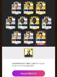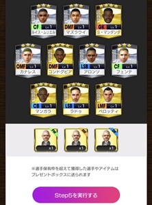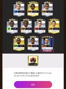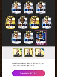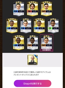 今回のガチャも奇数回に星5の出現確率が上がる「特別枠」があり、また10回、30回をまわすと好きな選手をもらえるボーナスがある。