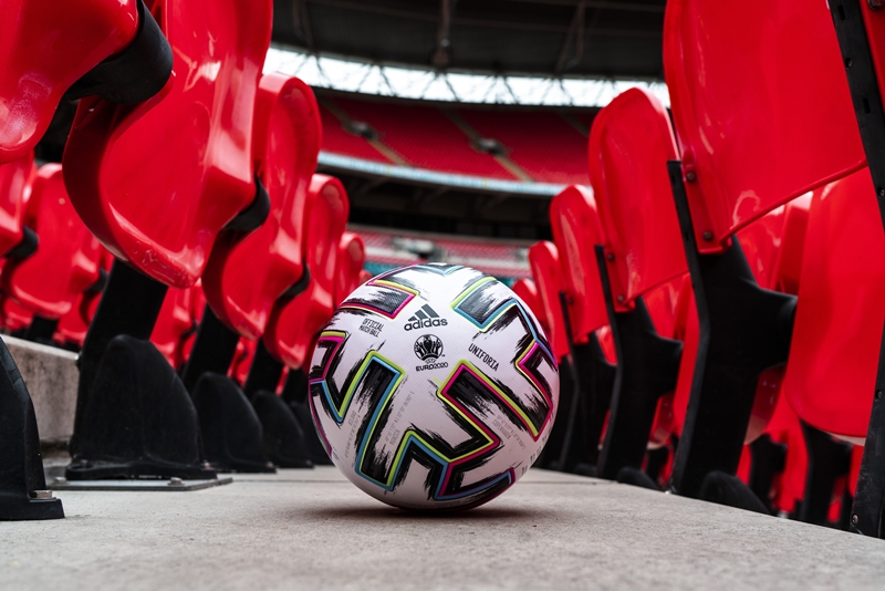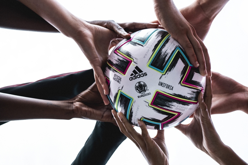 EURO2020公式試合球『ユニフォリア』は、大会に向けて高まる「凡欧州精神」を象徴するデザインを採用。アートとサッカーを融合し、一体となった時に生まれるパワーを表現している。