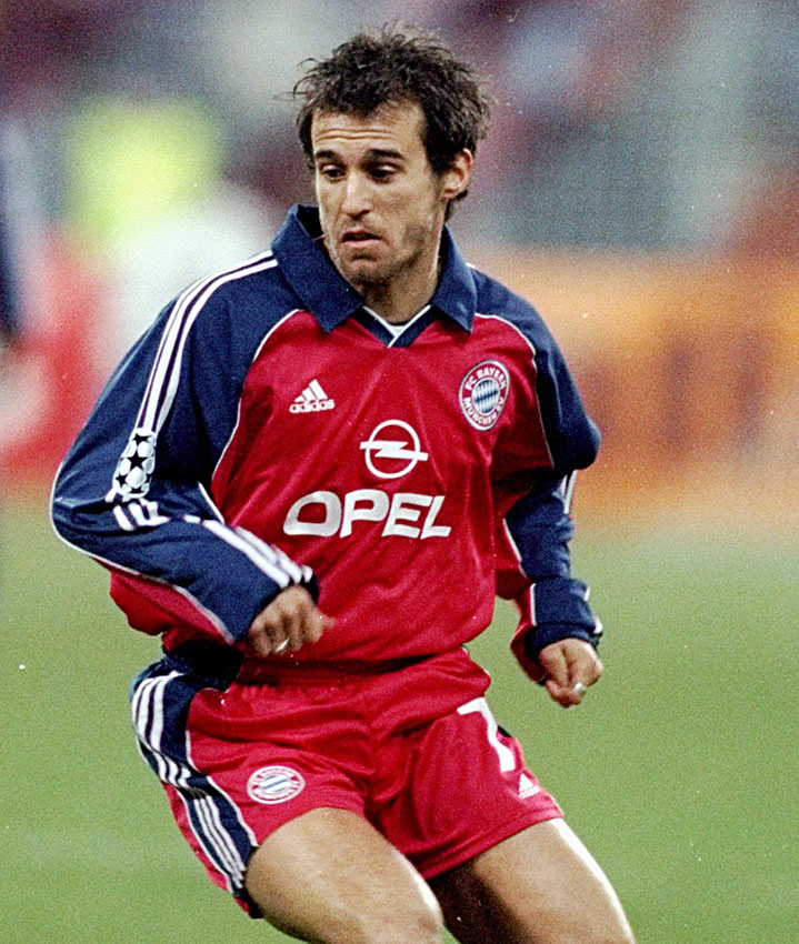 90年代のバイエルンはバラエティに富んだ色・デザインのユニフォームが多く登場した。99-01の2シーズンは、この力強さを感じさせる赤と濃紺のキットでリーグ2連覇を達成している。