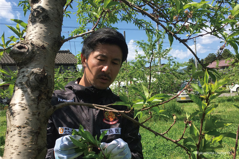 「福島県の農産物は本当に美味しいものばかりです。この美味しい農産物の魅力を届けたい。福島県と共に福島の農業を盛り上げたい。僕たちは、ただ桃色のユニフォームを着て試合をしている訳ではありません。そういう熱い想いを持って闘っています。だからこそ、桃ユニを着る時は、県外の方々にも福島をより一層知ってもらいたいという気持ちがとても強くなります。試合を観る際には、サッカーはもちろんですがユニフォームにも注目していただき、ぜひ福島の農産物を手に取っていただけたら...」