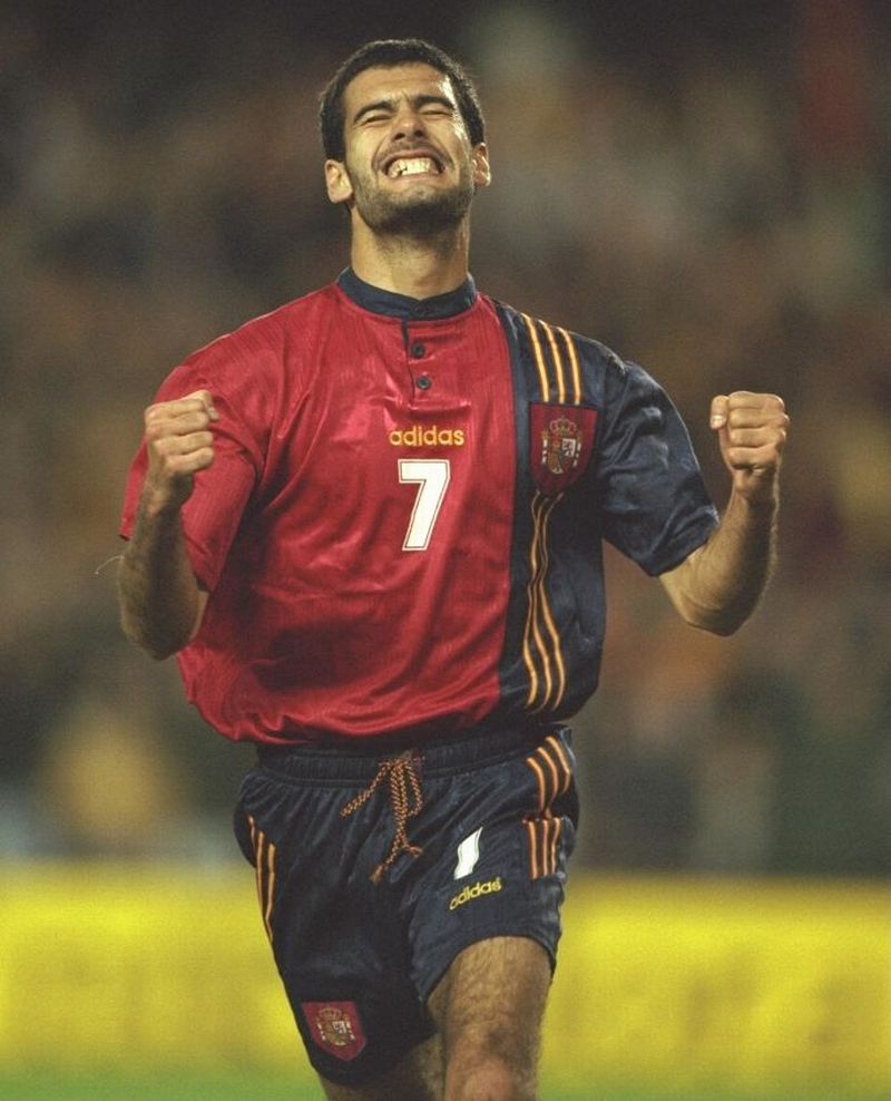 現在マンチェスター・シティを率いているグアルディオラ監督、25歳の頃を再現したアイコニックモーメント。ショートパスとフライパスが96、95まで伸びる。