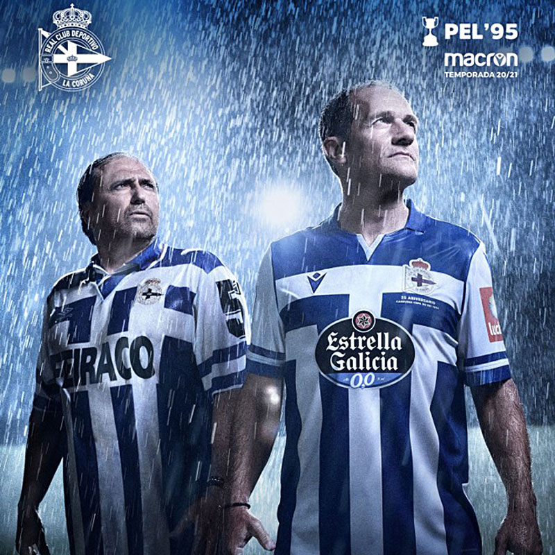 今回のビジュアルは、実は極めて珍しい1枚に。右の新ユニフォームと並んで写るのは、なんと95年の国王杯決勝でも着用したUmbro社製のユニフォーム。右胸にはお馴染みのダブルダイヤモンドを確認できる。