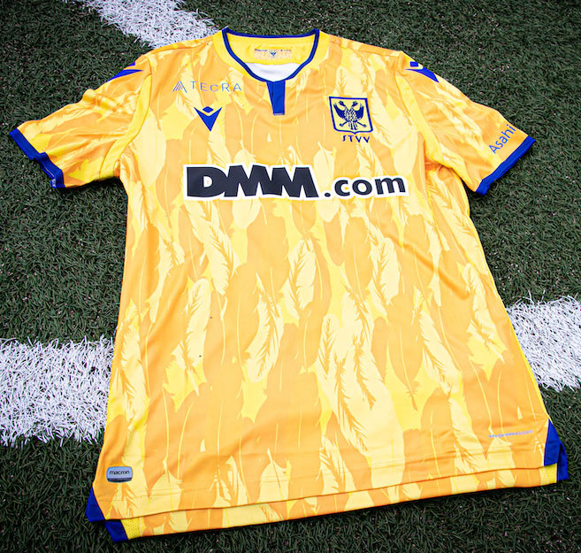 フィールドプレーヤーとゴールキーパーのファーストユニフォームは、アートディレクターの榮良太氏。コンセプトは「飛躍」で、エンブレムに描かれている“カナリアの鳥の羽”をモチーフに、「ここから、世界へ」を目指す選手、スタッフ、サポーターをイメージしたデザインとなっている。